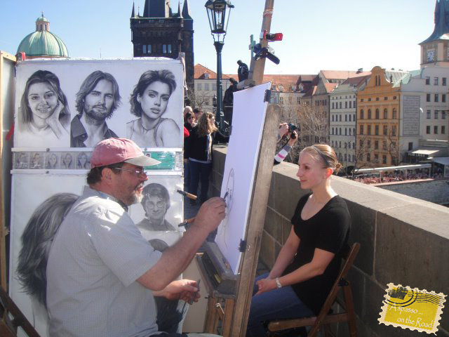 La ricchezza moderna di Ponte Carlo sono gli artisti di strada che rallegrano il percorso dei turisti: ritrattisti, musicisti, levitazione di monaci e molte altre persone bizzarre.